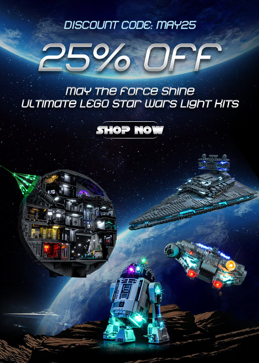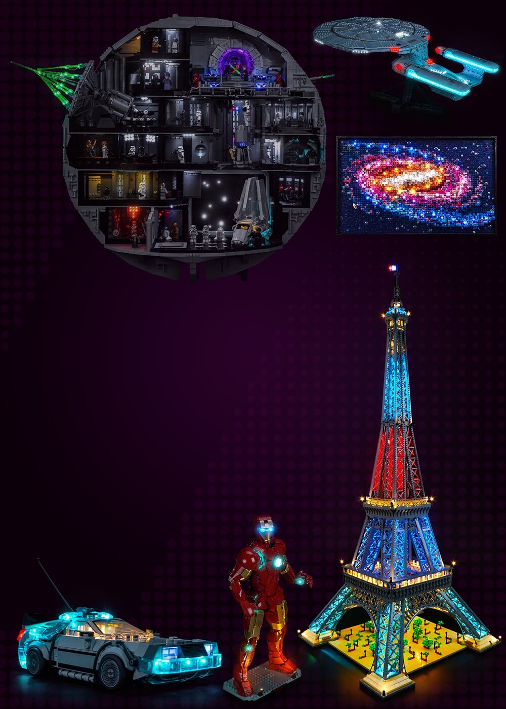 We don't just provide lights for your LEGO bricks, we also want to provide a new perspective to upgrade your creations. With our lighting kits, your buildings become bustling cityscapes, your spaceships soar through galaxies, and your castles light up the night.
