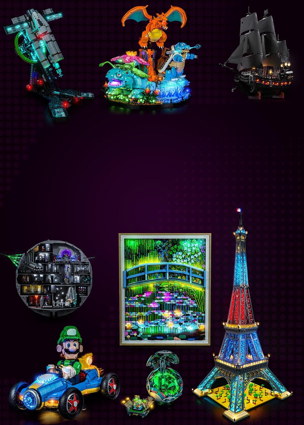 We don't just provide lights for your LEGO bricks, we also want to provide a new perspective to upgrade your creations. With our lighting kits, your buildings become bustling cityscapes, your spaceships soar through galaxies, and your castles light up the night.