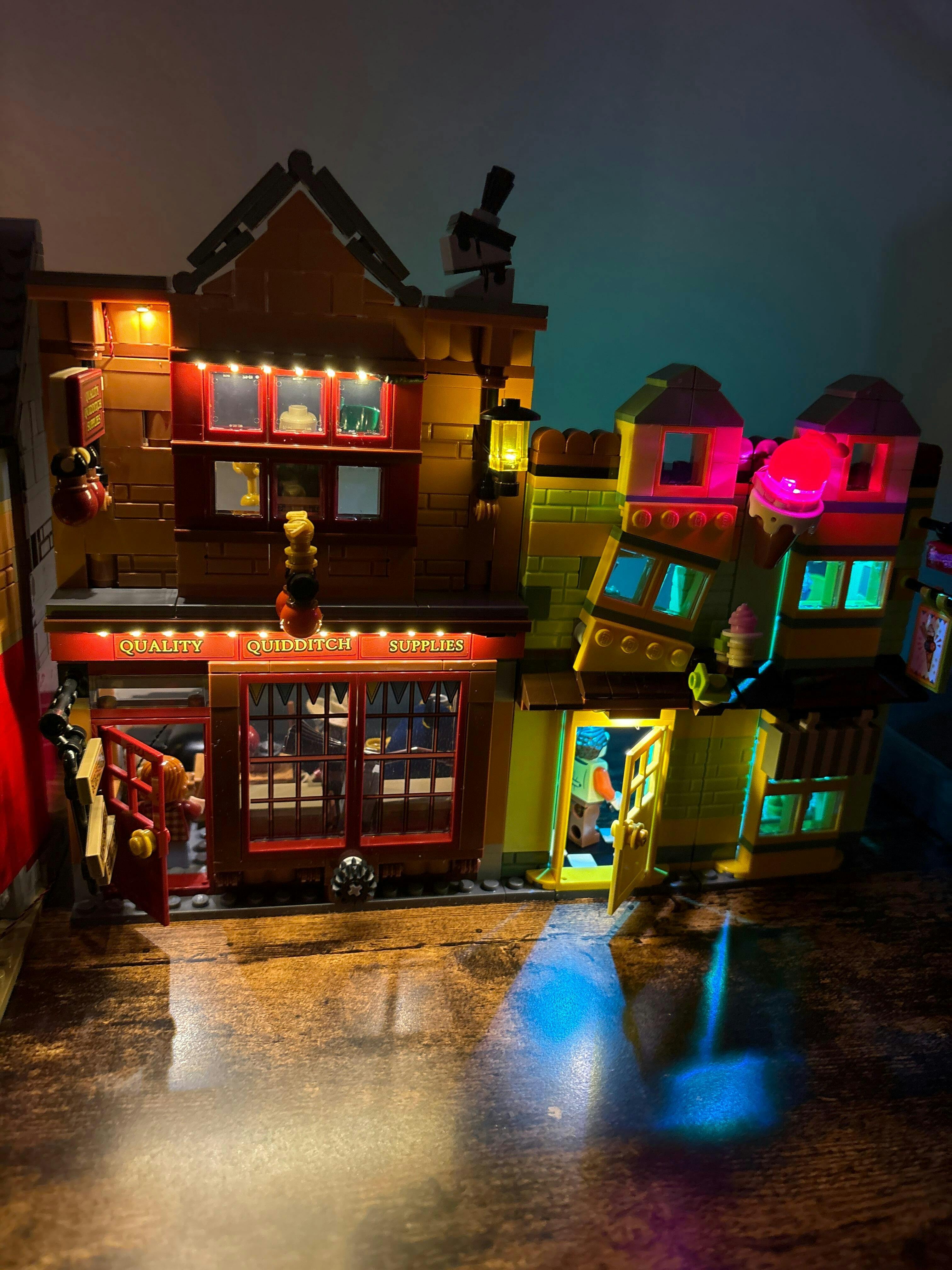BrickBling-Lichter erhellen nicht nur das Modell, sondern erhellen auch die magischen Erinnerungen der Kindheit. Lassen Sie sich vom BrickBling-Beleuchtungsset begleiten, um das magische Leben der Winkelgasse in die reale Welt zu bringen.