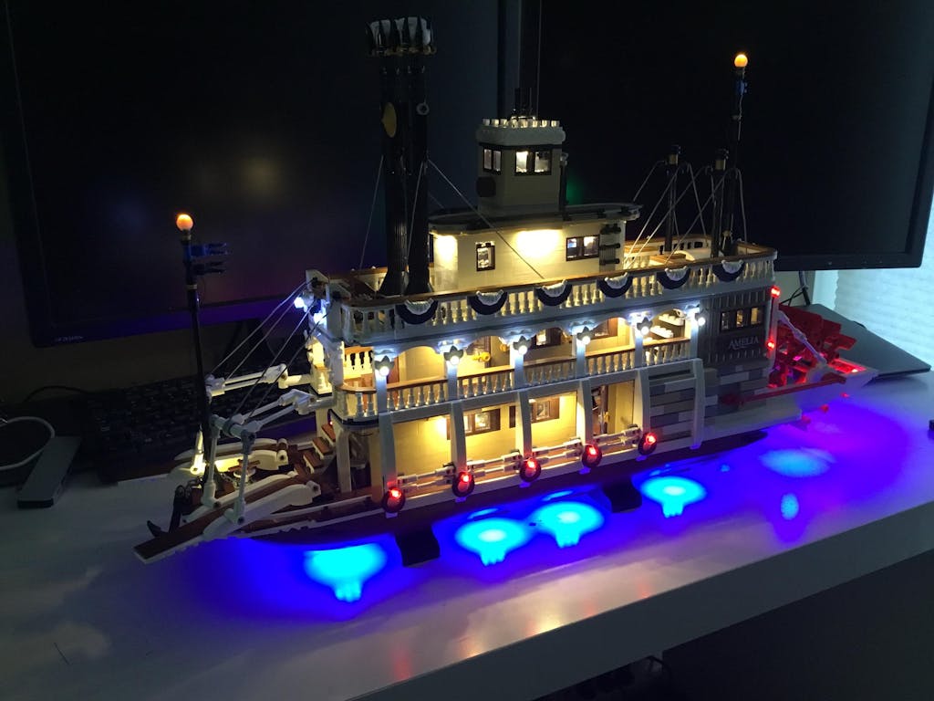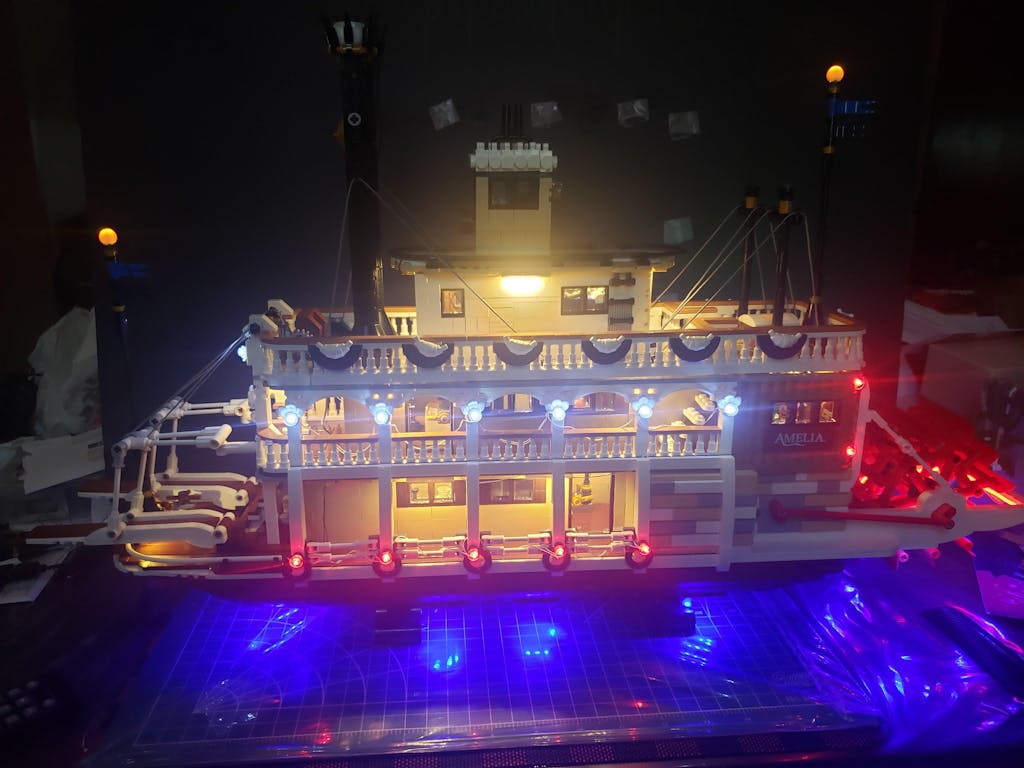Das BrickBling-Beleuchtungsset verleiht dem LEGO® Ideas River Steamboat 21356, einer Hommage an den zeitlosen Charme klassischer Raddampfer mit einem Hauch von modernem Luxus, eine besondere Note.