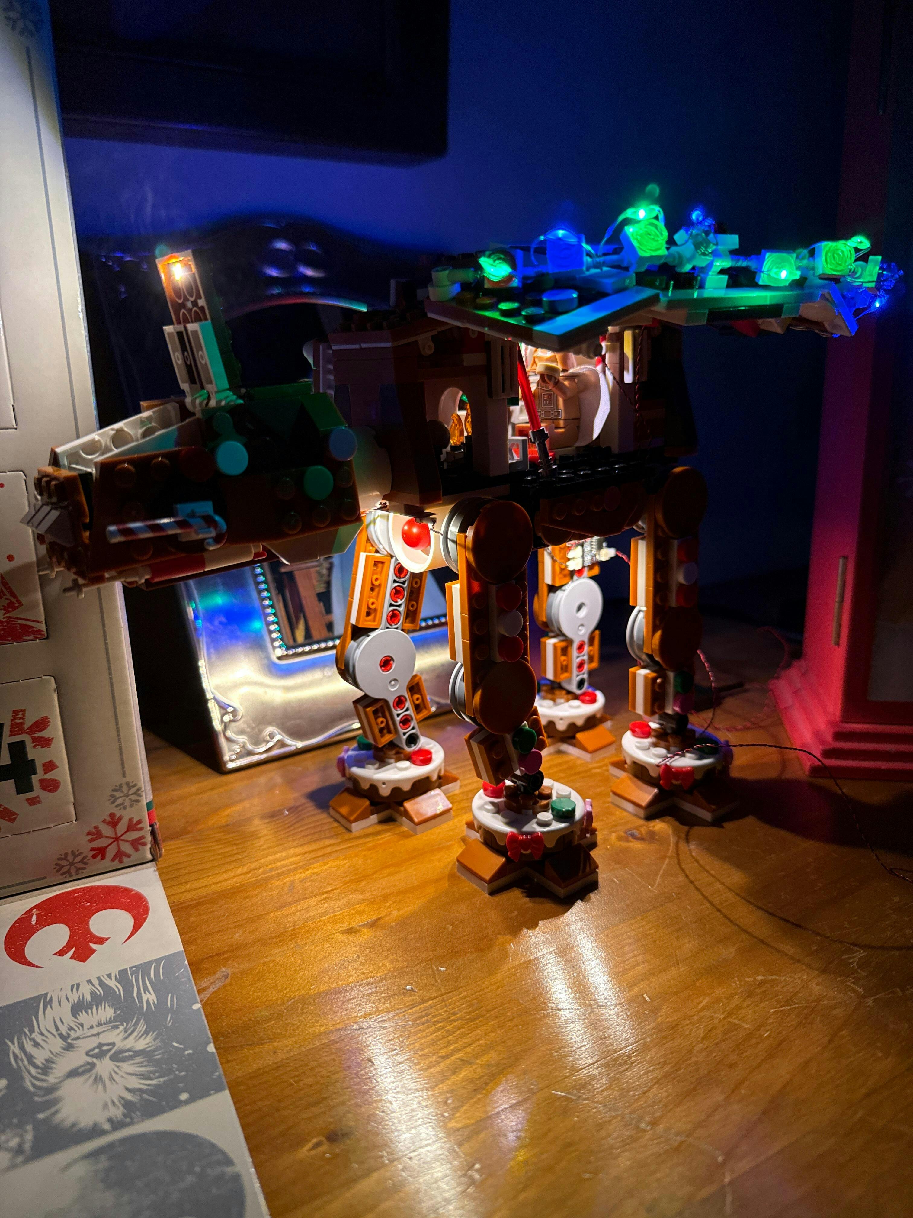 Lassen Sie den Lebkuchen-AT-AT in Licht und Schatten zum Leben erwachen und bringen Sie Wärme und Überraschung in Ihre Winternächte.
