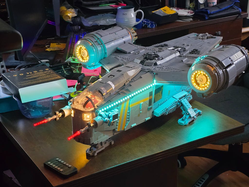 Das für LEGO Star Wars Razor Crest™ 75331 entwickelte BrickBling-Beleuchtungsset ist eine Hommage an das Schiff, das zum Start eines neuen Star Wars™-Abenteuers beigetragen hat.