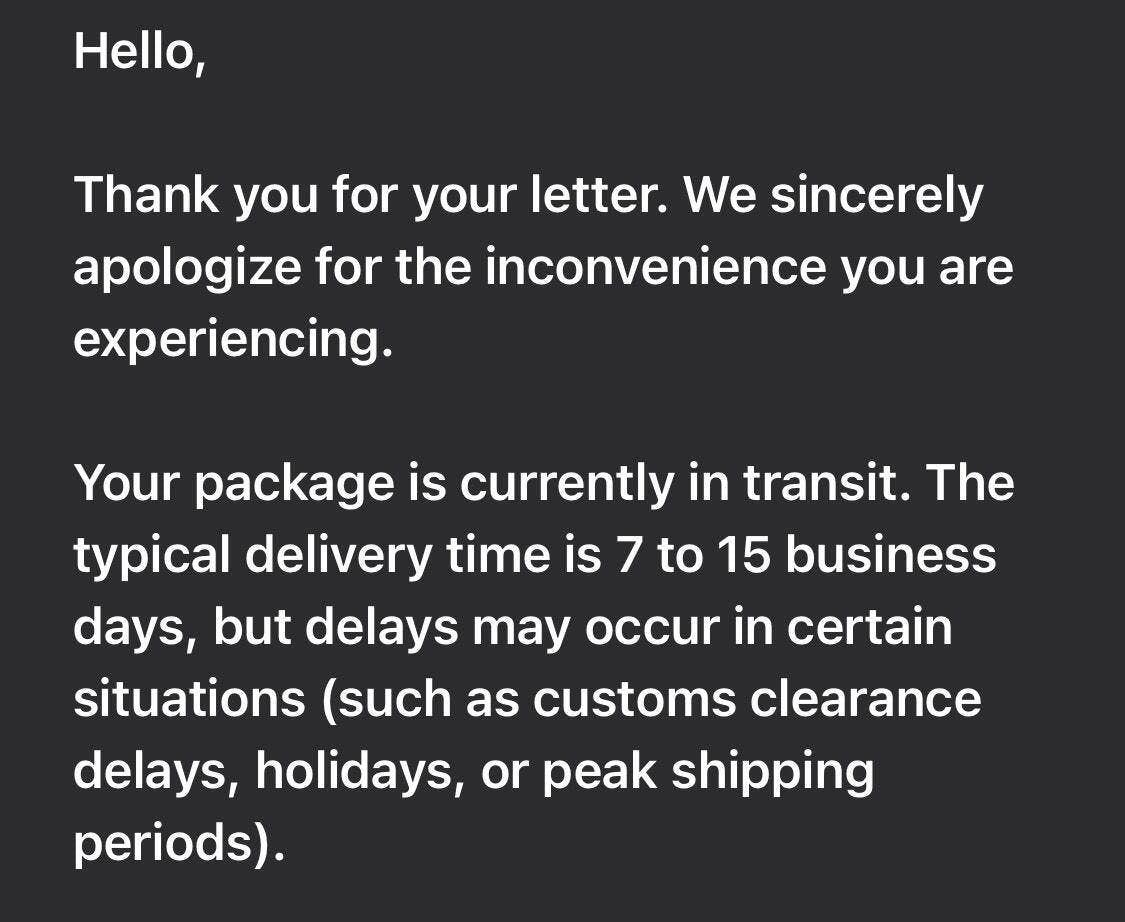 - Shipping time:Your order will typically be delivered within 7-15 business days.