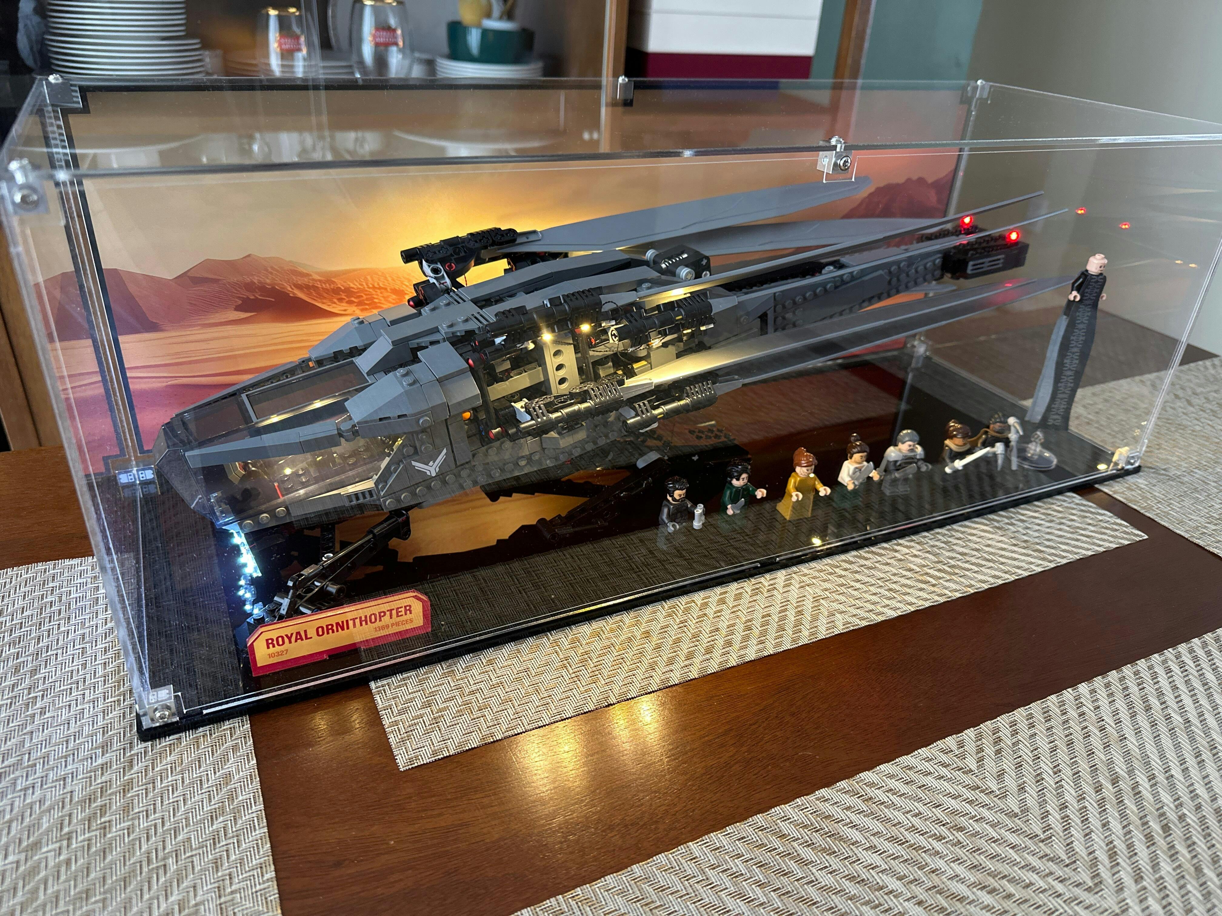 With BrickBling's advanced LED technology, the LEGO Atreides Royal Ornithopter casts a spellbinding glow that captivates all who behold its beauty. The warm light in the cockpit makes the pilot appear faintly, which is very cool. The white LED in the front simulates the weapon system of the laser array and the tail fin is dotted with 2 red LEDs. Every detail of the entire model is illuminated, greatly improving the viewing experience.
