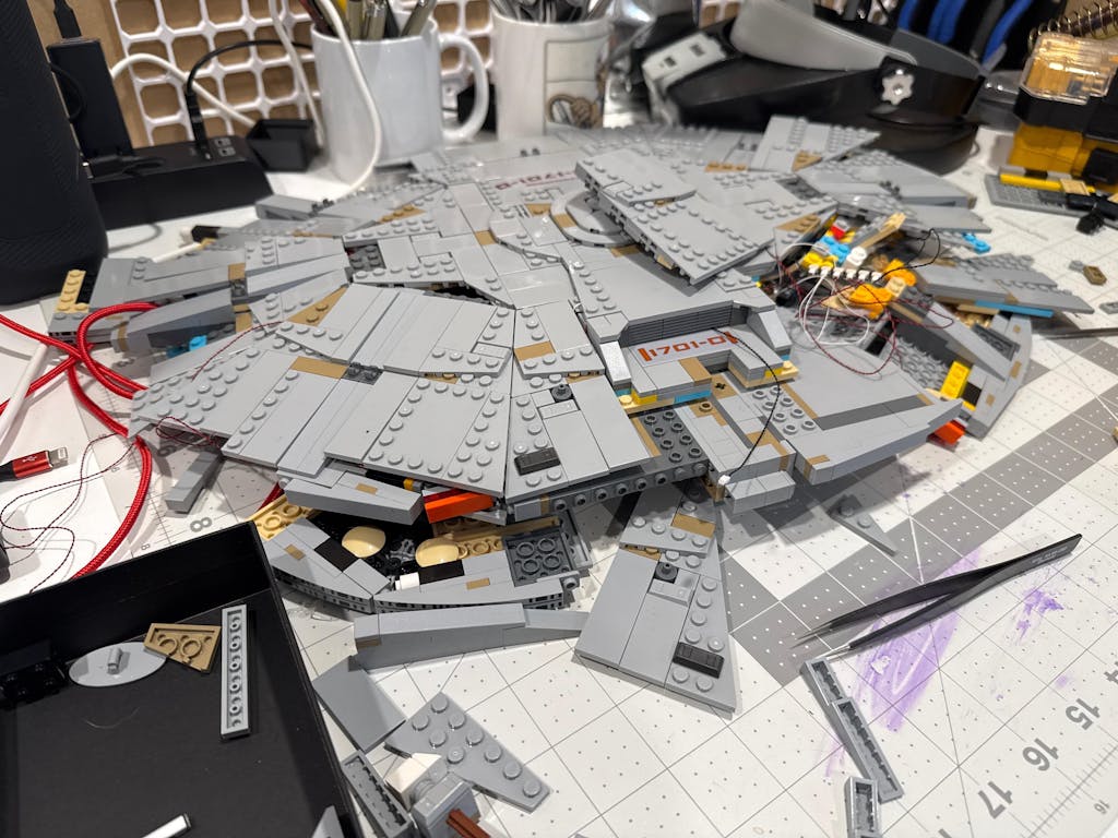 The saucer and secondary hull remain completely detachable even after the lights are installed.