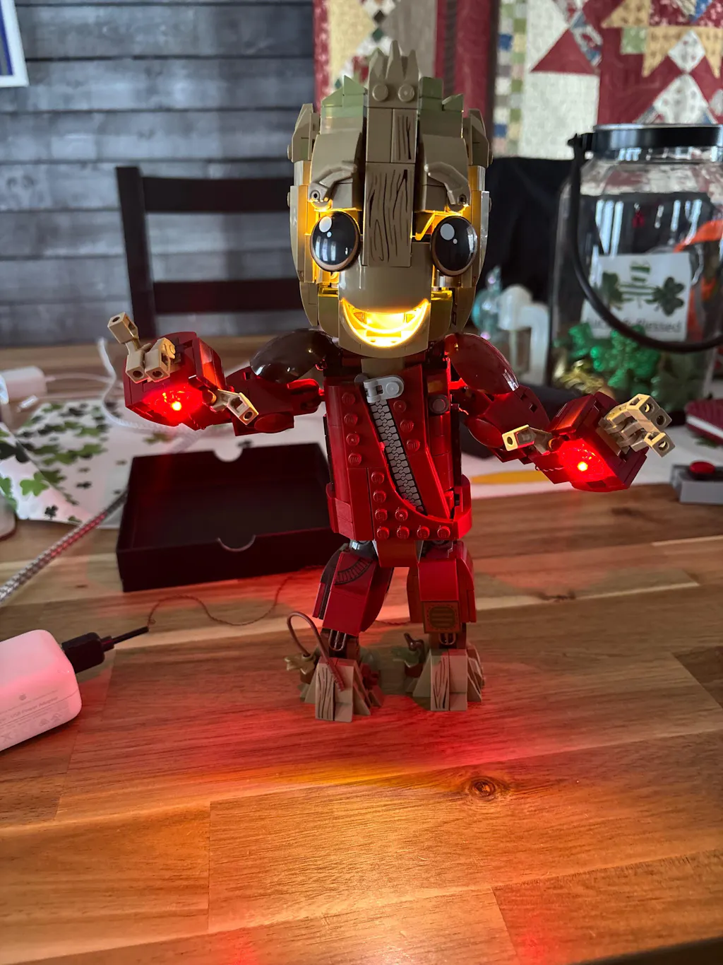 BrickBling's specially designed lighting kit for the LEGO Ravager Jumpsuit Groot 76341 transforms the adorable yet powerful little tree-like Groot into a dazzling cosmic focal point.