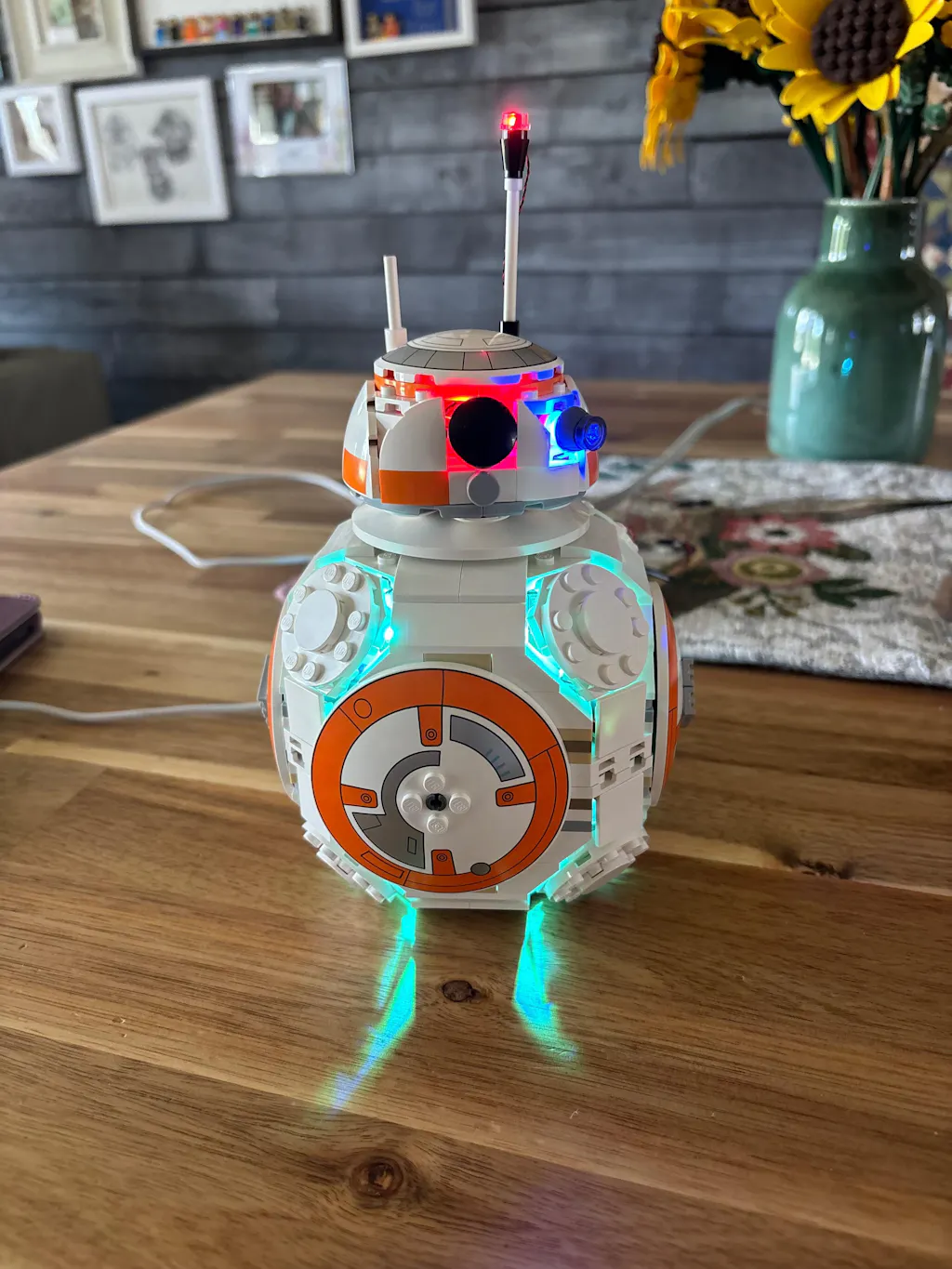 The lighting is perfectly integrated with the LEGO structure, giving it a sense of life even in static displays. Whether displayed in a cabinet, on a desk, or as the visual focal point of a Star Wars-themed space, the illuminated BB-8 will instantly become the center of attention.